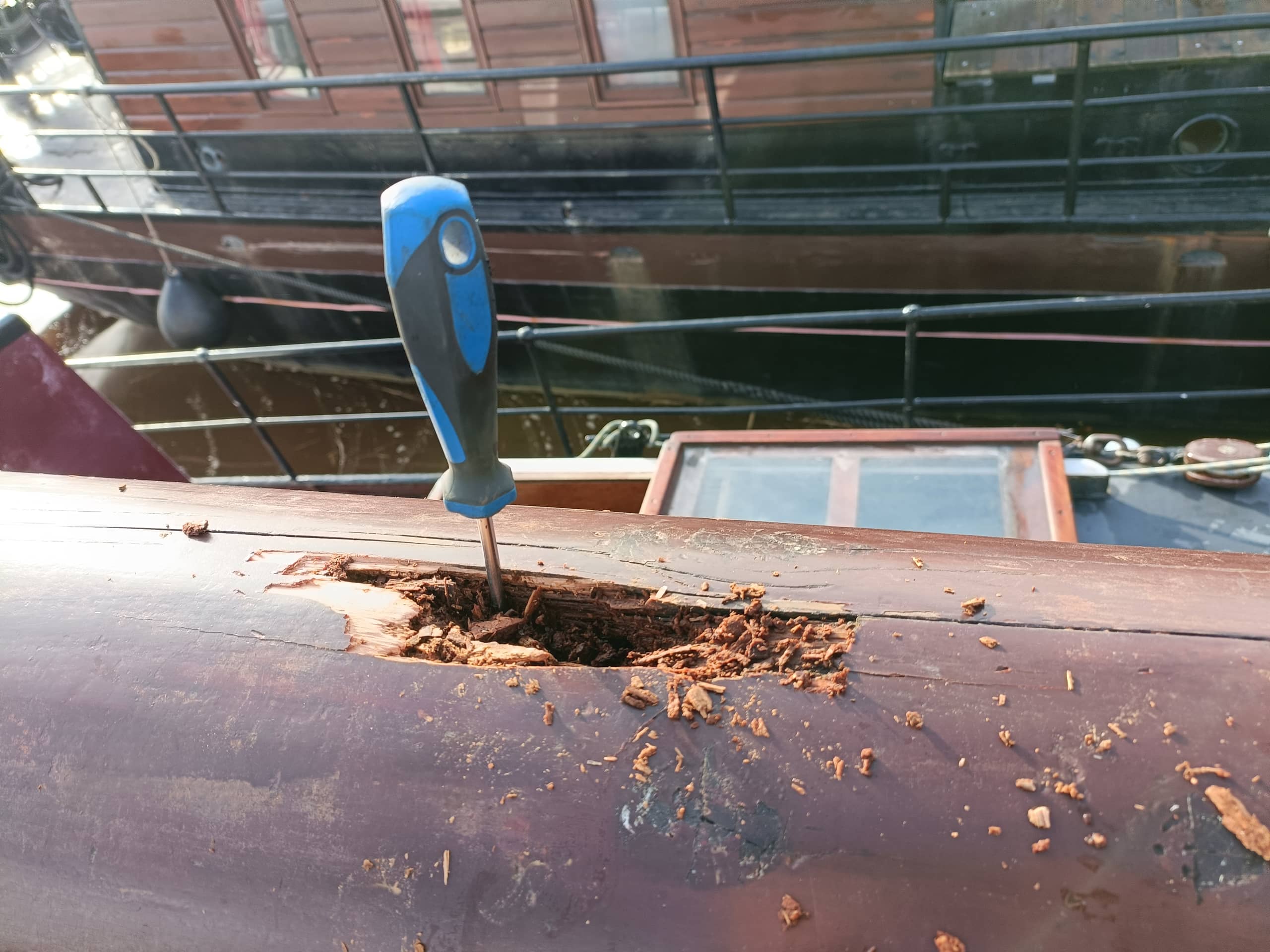 Dat geldt soms ook voor schepen die wel gekeurd zijn, maar moeten wachten op reparaties. Uit de eerste reeks van onderzoeken blijkt dat de inspecteurs op de meeste schepen bevindingen hebben. 2 controleurs van de Inspectie Leefomgeving en Transport (ILT) en een keuringsinstantie kijken in het bijzonder naar rot, roest, slijtage, breeksterkte van verstaging en borgingen. Zo worden alle rondhouten afgeklopt, bekeken en zo nodig met de priem gevoeld. Lieren, lijnen, stagen, sluitingen en de bevestigingen worden gecontroleerd en bekeken. De bevindingen worden daar waar mogelijk direct besproken met de schipper die ook vragen kan stellen en aanvullende informatie kan leveren.