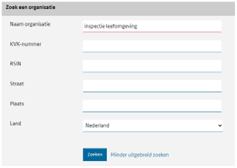 Om meldingen en aanvragen snel te verwerken, is het belangrijk dat u de organisatiegegevens zoveel mogelijk selecteert. Dit bespaart tijd, omdat de ILT geen bedrijfsgegevens handmatig hoeft in te vullen. Voor de verwerking kan de ILT bovendien gebruik maken van zoveel mogelijk unieke organisatiegegevens.